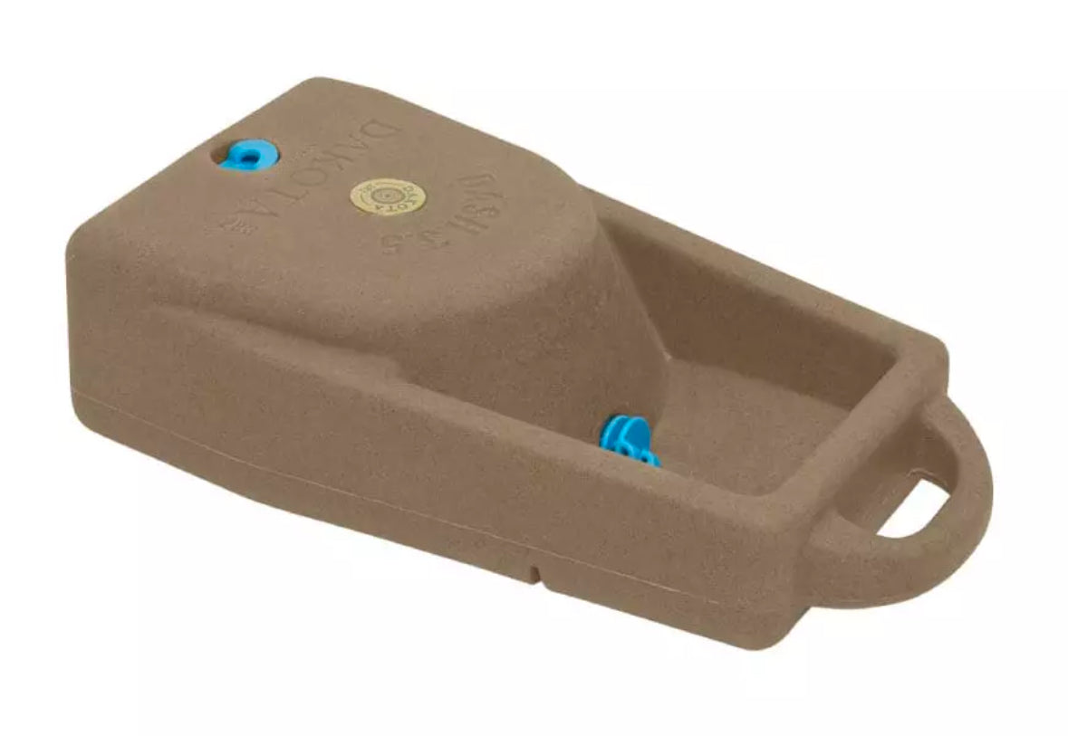 The Dakota Dash 3.5 gallon water bowl is an excellent way to keep your pets water stores mobile. Designed with hunters in mind, this unit holds up to 3.5 gallons of water. To use the unit, simply lift up the handle end and remove the rubber plug. There’s a small recess to store the plug on the bottom, so when you lay it down, your dog won’t chew it. Once the Dash 3.5 is laid down with the plug removed, the bowl area will fill with water. When the dog starts drinking, water will constantly backfill to ensure they don’t run out. When it’s time to go, just tilt the unit up to return left over water inside and push the plug back in place. It’s great for trips to the woods, field, vacation or even just as a regular water station at home.