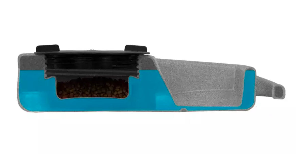 The Dakota 283 Dine N Dash Food and Water Bowl System is an excellent way to keep your pet’s food store mobile. Designed with hunters in mind, this unit holds up to 2.5 gallons of water and half a gallon (~8 cups) of dry food, all at once. Even a few dogs will be well off for a day of hunting or a weekend camping trip.