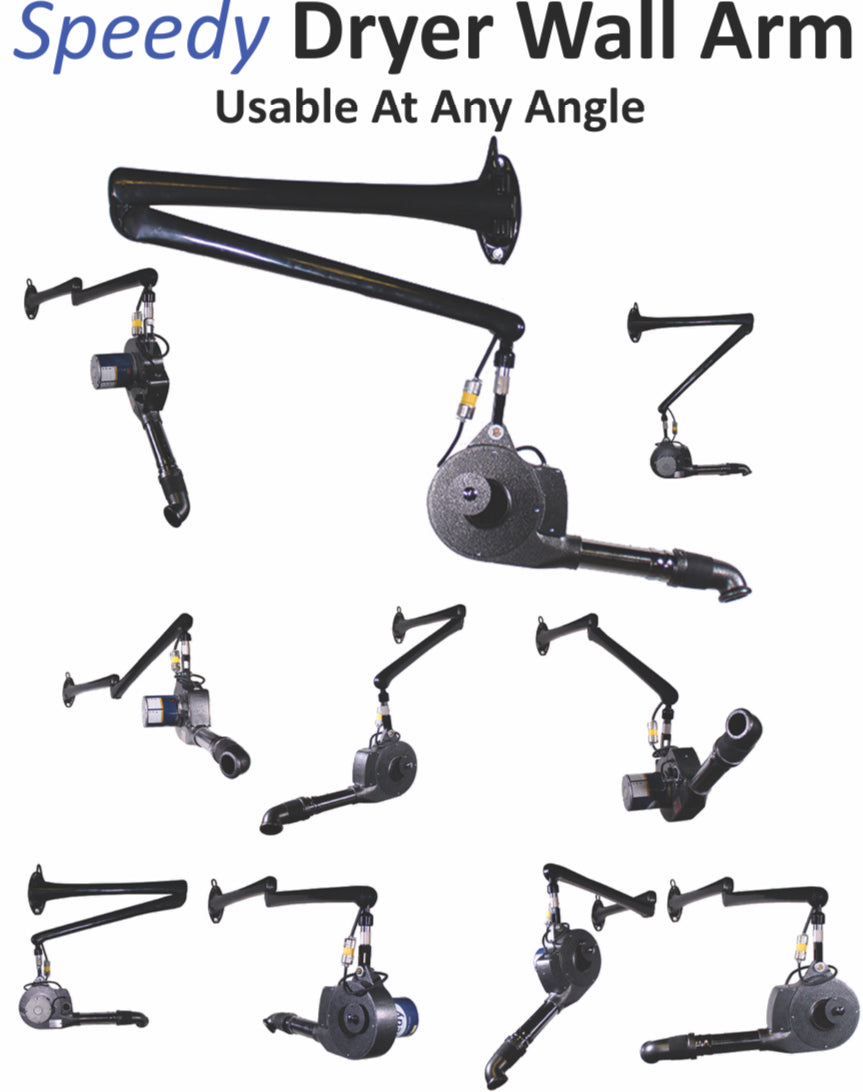 Nicknamed "The Rocket," the D-15 is our most portable stand dryer. Designed to be powerful, the D-15 boasts a 175 CFM maximum air flow from its whisper quiet motor. Wall Arm is also included.