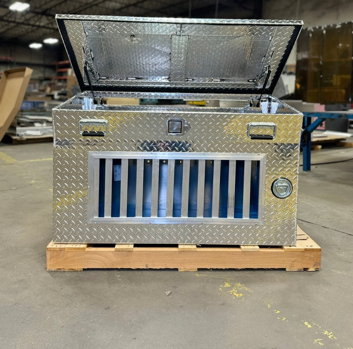 - Plastic corrugate lined dog compartments