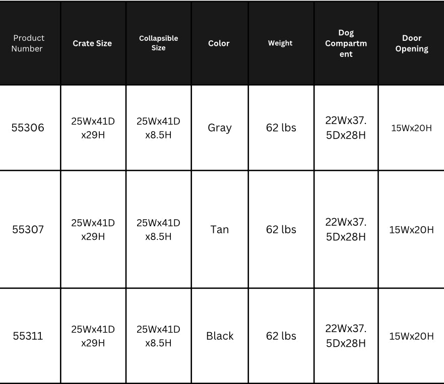 • Crate has 1 spring loaded rattle free, carrying handles for moving when crate is collapsed