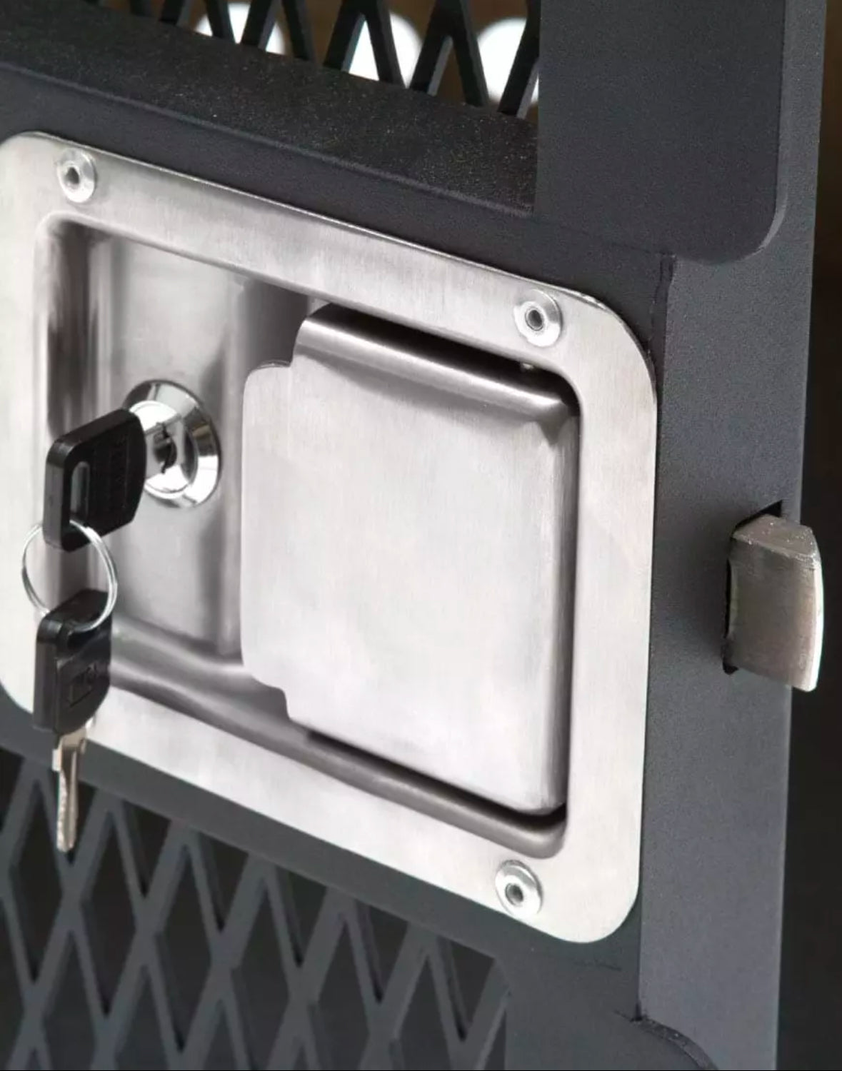 • A lockable keyed paddle latch will keep pets safe from theft.