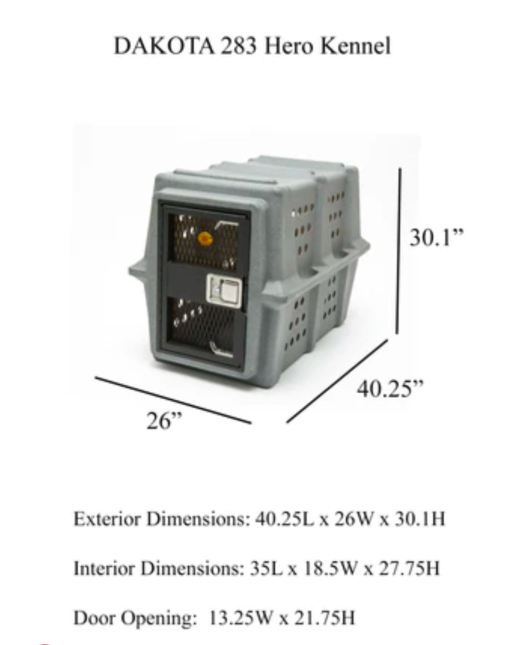The Dakota 283 Hero Kennel is designed with working dogs in mind. Named for the heroes it was built to protect, the Hero Kennel was originally built for military and police dogs. It is molded and assembled in the USA in one solid, seamless piece from rugged, military-grade materials that have been tested in the harshest of environments.