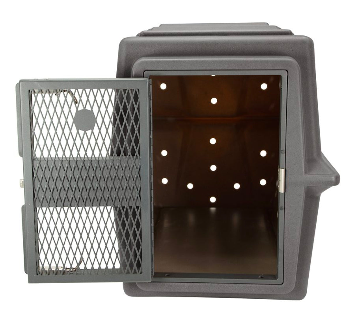 The solid, molded-in handles on each side make this kennel easy to transport and put into vehicles. The handles can also be used as tie-down points, allowing the crate to be secured in place easily into any vehicle. Small, scattered ventilation holes prevent chewing while still providing plenty of airflow. The crate also features a rear drainage hole for easy cleaning.
