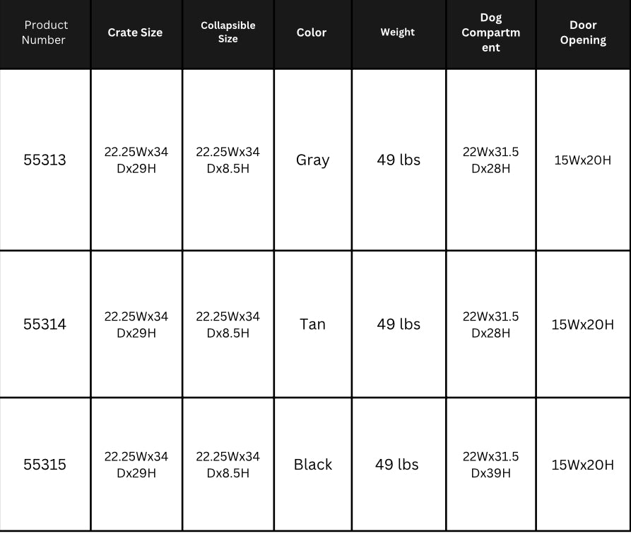 • Crate has 1 spring loaded rattle free, carrying handles for moving when crate is collapsed