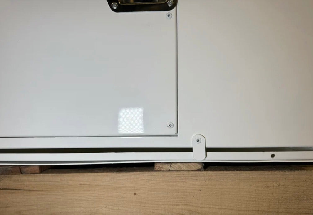 - Double wall door is slotted for a crate cooling fan