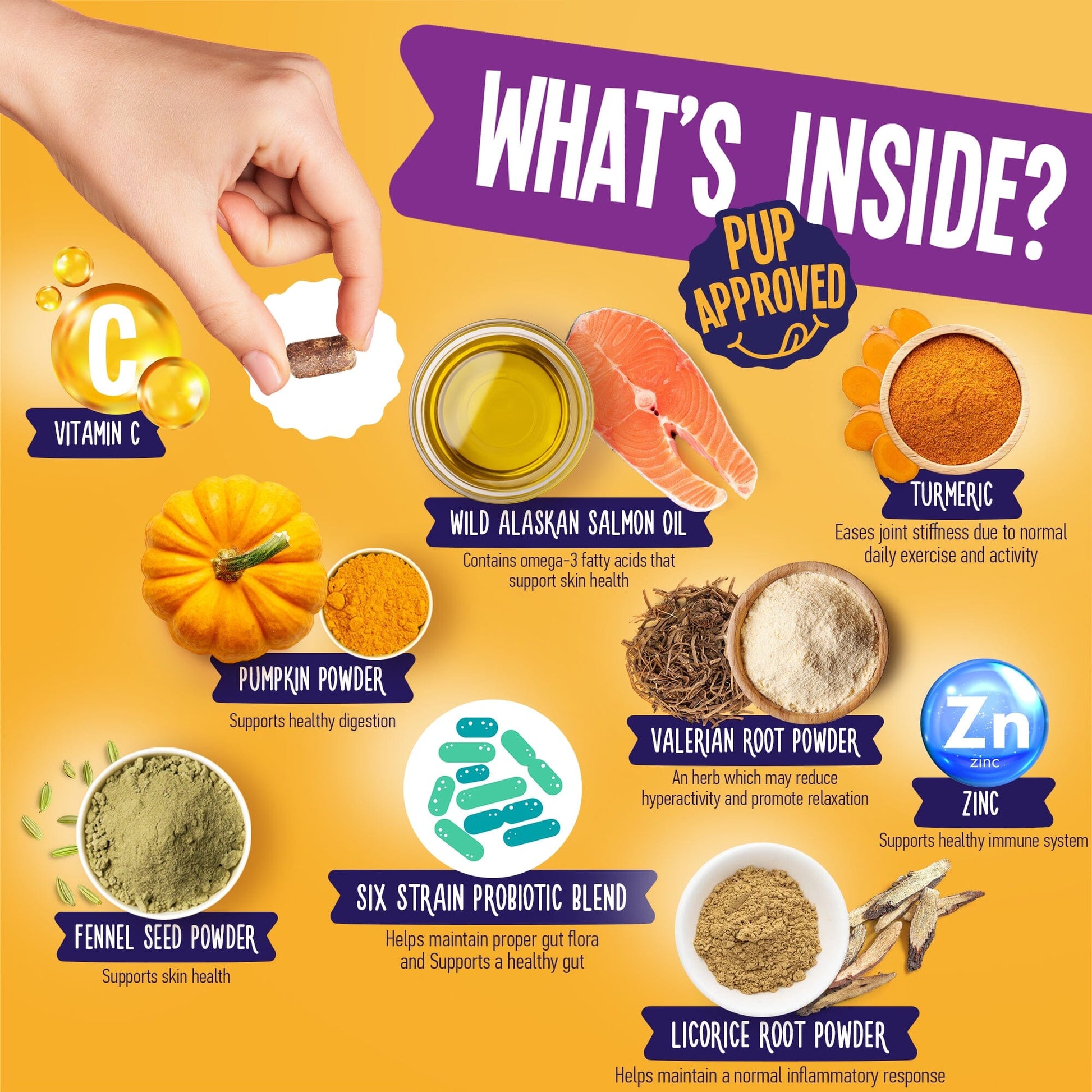 - Contains Omega 3 fatty acids, zinc, and probiotics;