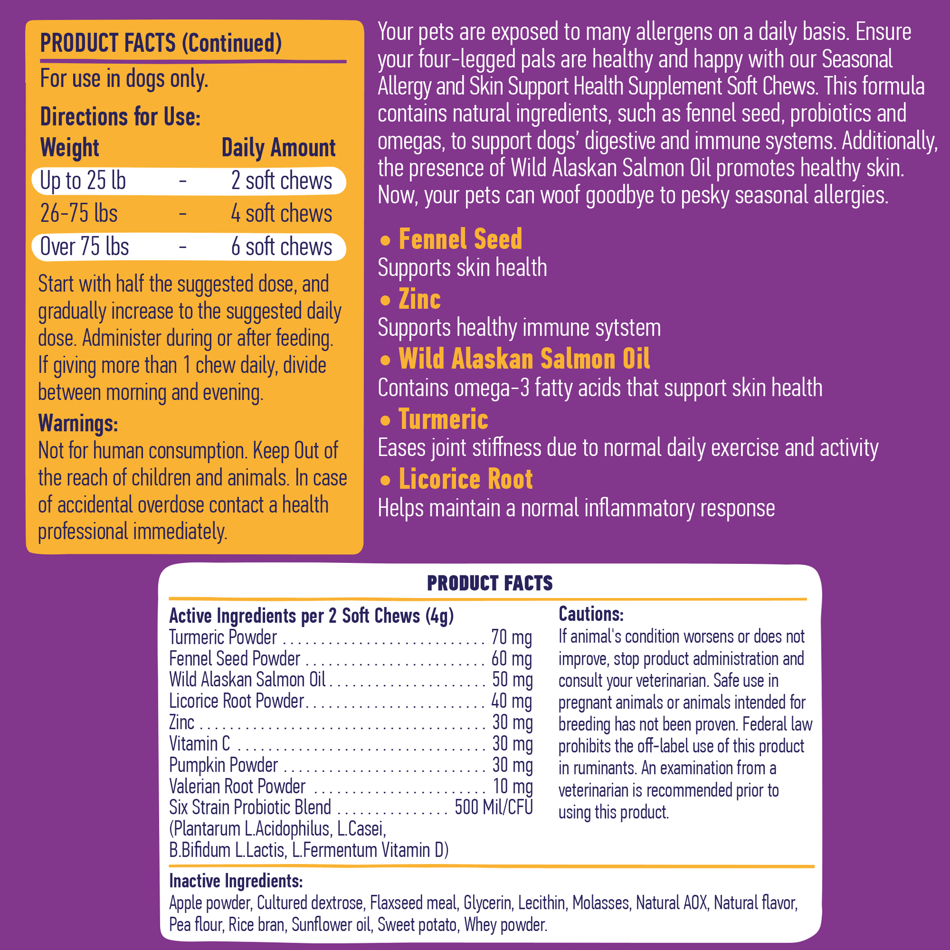 - Natural solution to protect your pet against seasonal allergies;