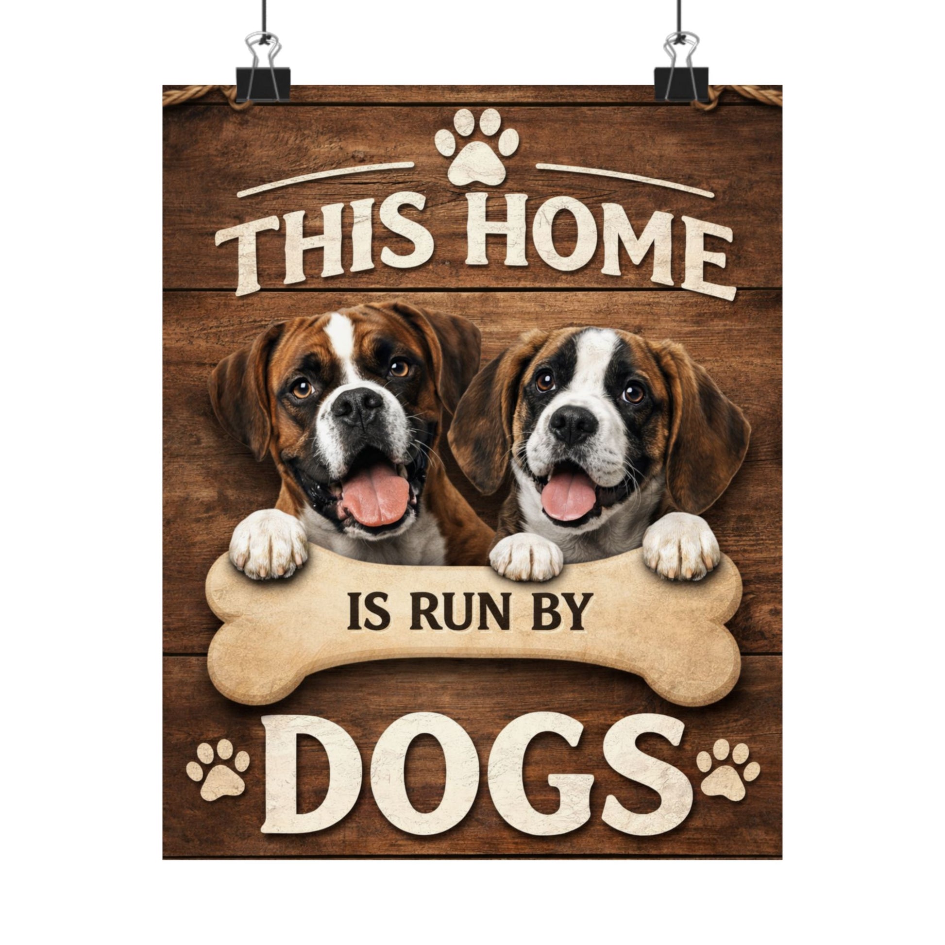 This Home Is Run By Dogs Matte Poster | Funny Dog Lover Wall Art, Rustic Farmhouse Pet Home Decor, Dog Mom Gift