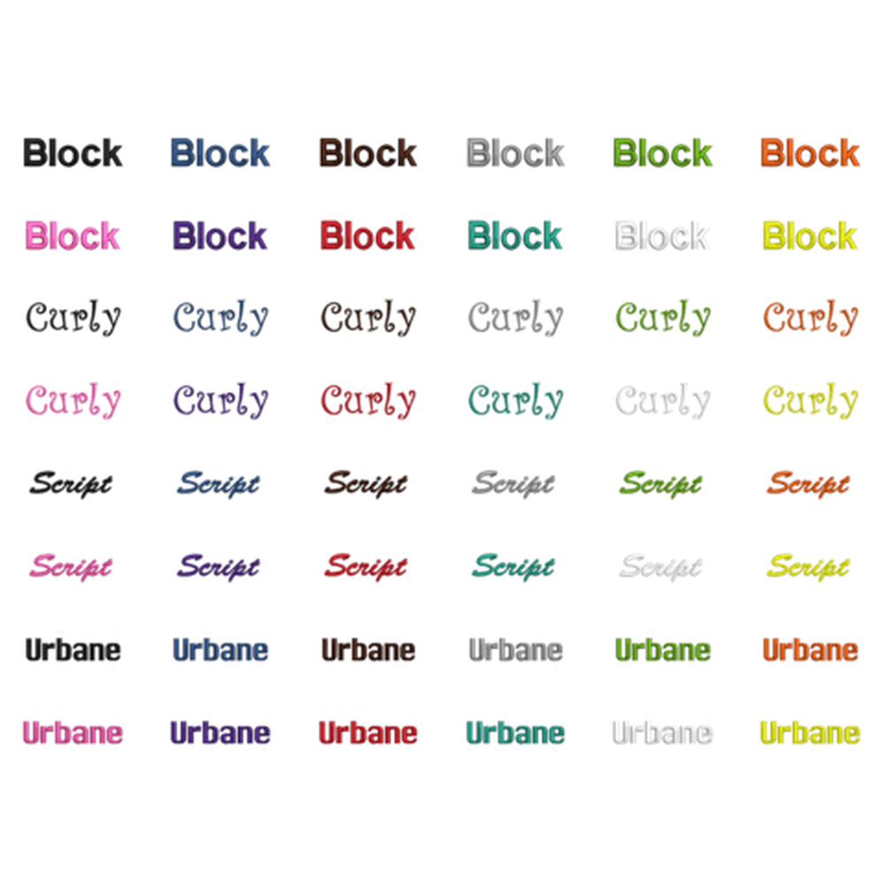- 11 Colors Available; 4 Sizes; 11 Thread Colors and 4 Fonts to choose from!