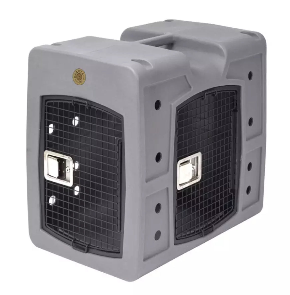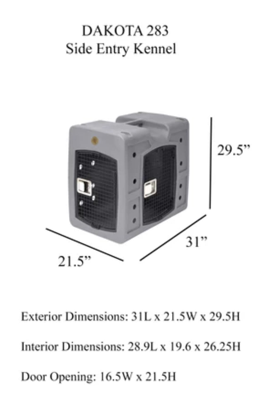 The Dakota 283 2D Side-Entry Framed Door Kennel is our most versatile dog kennel. The kennel provides ease of entry for your dog with access to the crate from two separate sides. It is made with solid one-piece construction to hold up on all the adventures you and your dogs take and easily fits into any space or vehicle. The G3 side-entry model also offers two paddle locking doors and plenty of ventilation. Clean up is a snap with the small drain holes in the corners. Feel at ease, knowing that your pet is protected by the highest quality plastic molded kennels available on the market today.