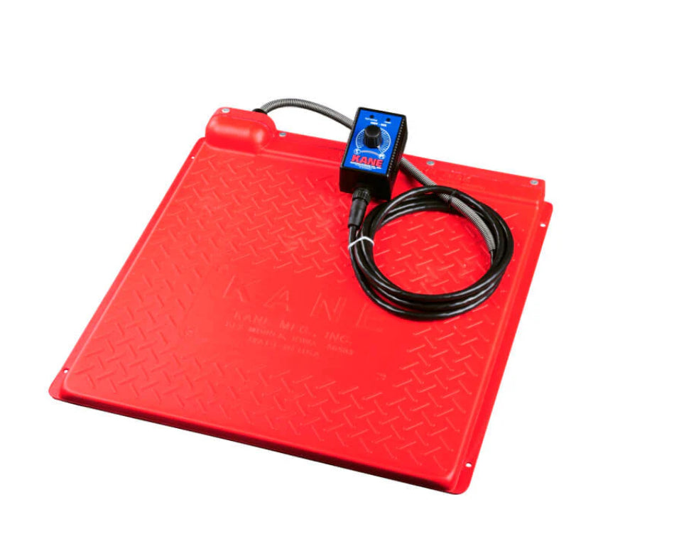 The temperature-controlled Kane Heat Mat provides a safe and consistent heat surface. Internal temperature sensor cycles the heat mat on and off to maintain temperature at a user-selected setpoint between 40–105 degrees Fahrenheit. Constructed of sealed polyethylene so it is easy to clean and sanitize. Made of durable, easy to clean polyethylene, Kane mats provide a safe and consistent heating surface. Perfect for outdoor pens, kennels, garages, dog houses, whelping areas and veterinary clinics. NRTL, CSA/US approved.